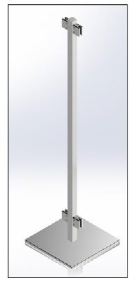 Base: 300x300mm amb suports regulables ocults per a compensar irregularitats. Muntant: tub 30x30mm i altura de 1200mm. Pes: 10 kg/un. Ample màxim entre muntants: 1200mm. Altura màxima de sòl a vidre: 1800mm. Opcional amb rodes. Pinça inferior a 100mm de sòl o a 700mm. Inclou 4 pinces (la inferior amb topall).