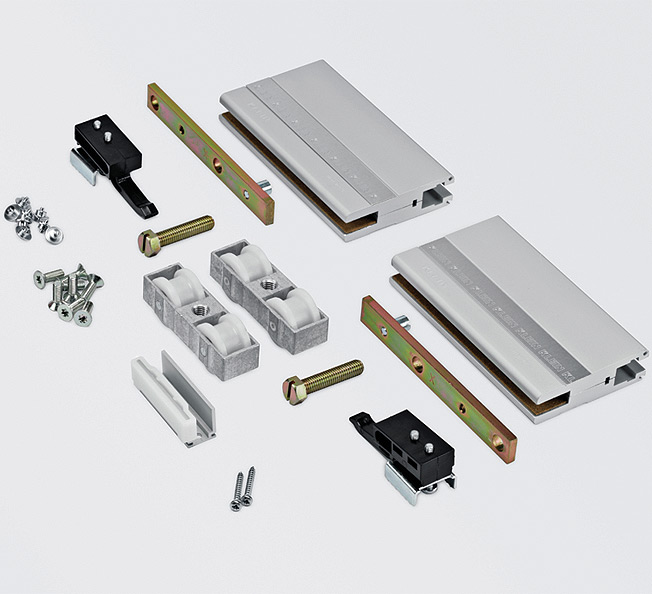 Juego de accesorios POCKET GLASS para 1 hoja de hasta 150 kg. Vidrio 10 mm. Incluye: Juego de rollers, juego 2 pernos de regulaci n con pletina retr ctil y juego 2 mordazas de suspensi n. Mecanismos para puertas correderas de vidrio hasta 150 kg por hoja. Perfil superior de aluminio en acabado anodizado Silver. La fijaci n del perfil es a techo o a pared con soportes ref. 2379. Rodamientos con cojinetes a bolas. Regulaci n vertical escamoteable. Las hojas correderas de vidrio se suspenden mediante mordazas de presi n controlada, que garantizan una perfecta sujeci n. Las mordazas permiten vidrios de 10 mm de espesor. El vidrio no precisa ning n mecanizado y por tanto puede adquirirse templado o laminado.
