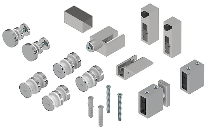 KIT CUADRO PUERTA CORREDERA + FIJO ENTRE PARED/VIDRIO - VIDRIO 8/10MM REF.02981.K2IB