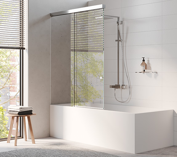 Se necesita uno por mampara. Visto desde dentro. Componentes: -1 conector de pared especial, lado derecho -1 tapeta para conector de pared especial -1 tapa final cromada para el extremo de perfil libre -1 conjunto medios auxiliares para montaje. Altura m xima del sistema (medida desde el borde superior de la ba era o el plato de ducha) 2200mm. Anchura m xima del sistema (longitud del riel de rodamiento) 1500mm.