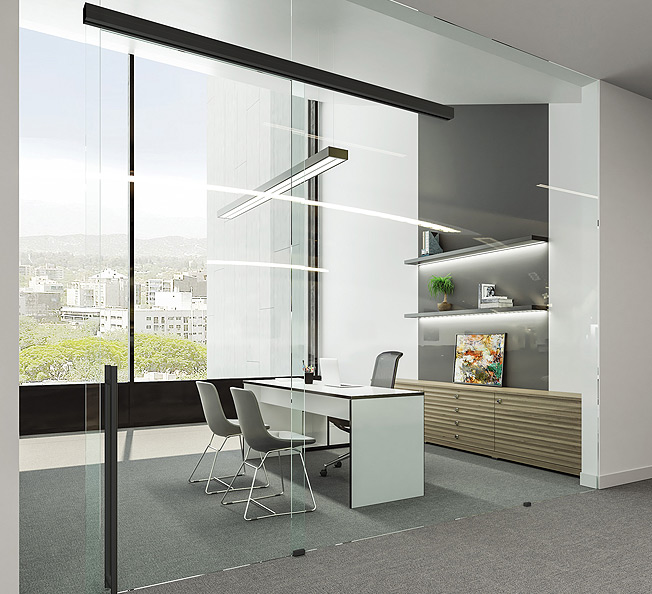 KBS+: Klein Brake System - Tope con freno amortiguador. Est dise ado para ser instalado en pared de vidrio para crear ambientes a trav s de un panel de vidrio sin marco generando m s iluminaci n. Sistema de una puerta corredera de vidrio sin marco Instalaci n sobre pared de vidrio de 10, 12 y 16mm. Perfil de aluminio anodizado Silver y Negro F cil instalaci n: la puerta corredera de vidrio no necesita ser mecanizada (templado o laminado) Vidrio corredero de 10mm y 12mm Peso hasta 100 Kg Regulaci n de la altura de +-3mm Dise o limpio e innovador El sistema de rodamientos permite un suave movimiento sin esfuerzos No necesita riel en el suelo con lo que dejamos limpia la zona de paso Garant a KLEIN 5 a os