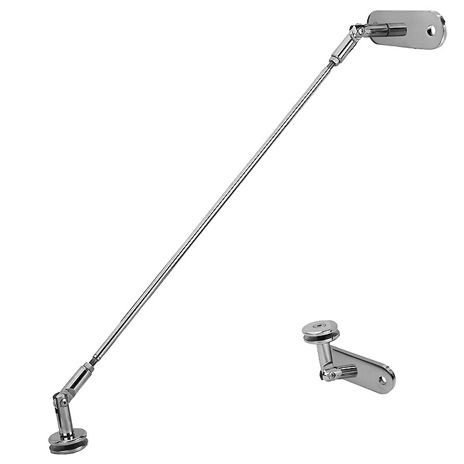 Fabricado en acero inoxidable AISI 304. Torniller a en acero inoxidable A2. Tirantes r gidos regulables en acero inoxidable AISI 304. La resistencia mec nica al estiramiento y rotura de un conjunto montado compuesto por: un soporte pared tirante, un soporte vidrio tirante y un tirante = a 500 kg. (Ensayo realizado nicamente con las partes arriba mencionadas, este ensayo se ha realizado sin anclar el conjunto a ning n tipo de base). Para que la eficacia sea correcta la base donde se anclen los tirantes para la instalaci n de la marquesina debe de estar en ptimas condiciones y usar inyecci n qu mica u otro tipo de anclaje que asegure una correcta fijaci n. Consultar con el suministrador de dichos anclajes cu l es el espec fico para cada tipo de base, Hueca, Maciza, Mamposter a, etc. OPCIONES BAJO PEDIDO: Otros espesores de vidrio y voladizos especiales. Por seguridad se recomienda usar vidrio laminado o templado y laminado.