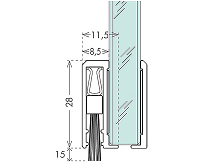 -APLICACI N: Puertas de vidrio. -RECORTE: M ximo en ambos lados. -TIPO DE FIJACI N: Con cinta adhesiva de doble cara de alta resistencia. -JUNTAS: DB. Cepillo de polipropileno 0,15mm. -CARACTER STICAS T CNICAS: Movimiento autonivelante. Perfiles de aluminio en aleaci n 6060 T6. Tap n de acabado de PA6 20%.
